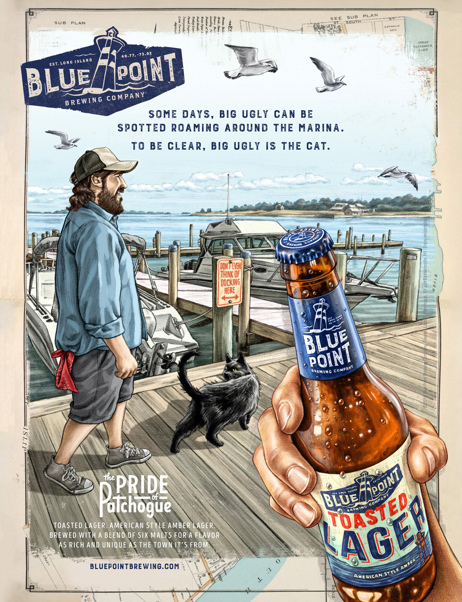 VSA Partners hired me to create the art for Blue Point Brewery's 2016 national ad campaign. They wanted to poke a little fun at the decidedly un-glamorous nature of the brewery's Patchogue, NY headquarters, which corresponds with their hilarious TV spot from this past spring.